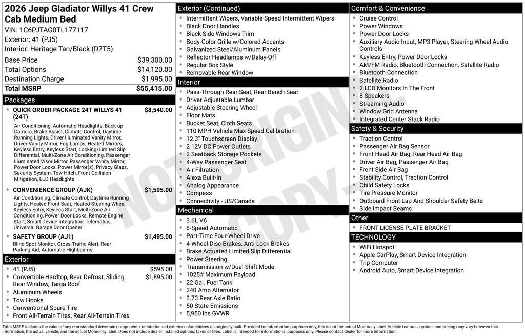 - Vehicle Name: Jeep Gladiator
