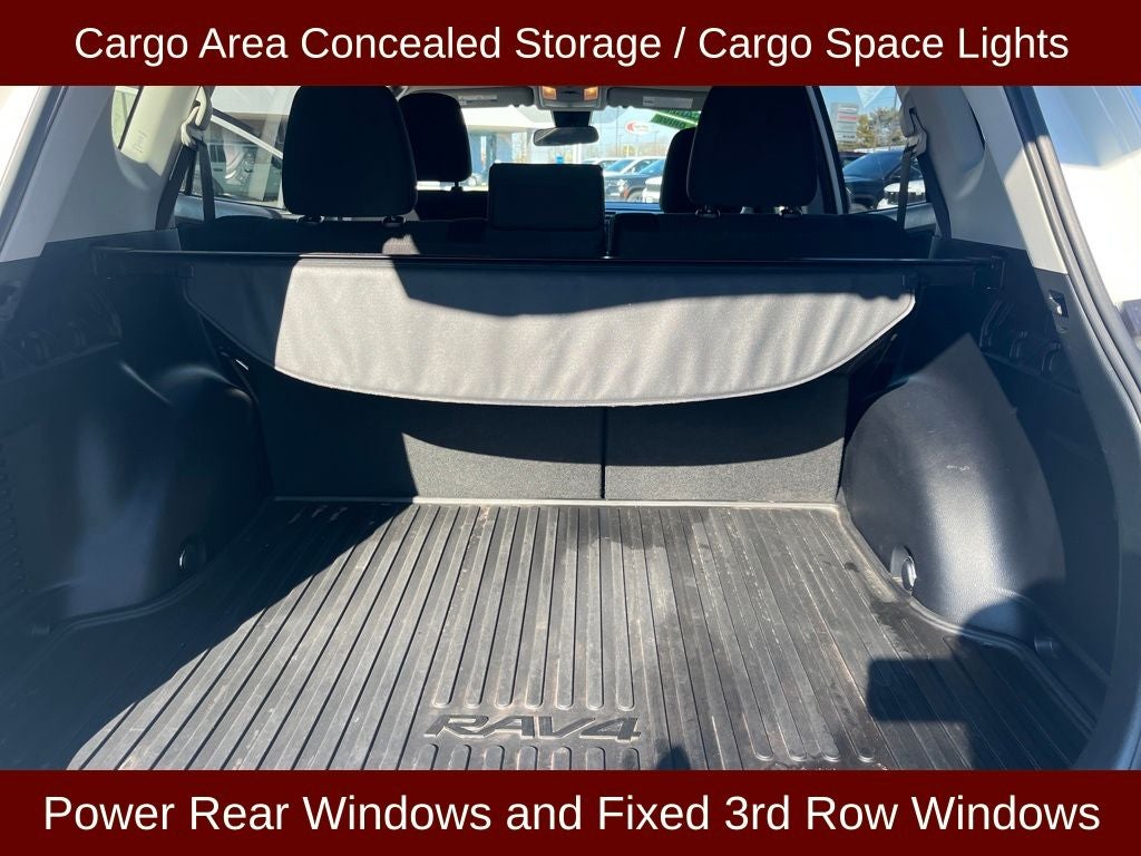 2018 Toyota RAV4 LE in White vehicle highlights include.., CLEAN CAR FAX, ACCIDENT FREE, AWD, TONNEAU COVER, BACK UP CAM / REAR VIEW CAMERA, PEDESTRIAN WARNING, SMART CRUISE CONTROL, PRE COLLISION ASSIST W/AEB, REMOTE KEYLESS ENTRY, ILLUMINATED ENTRY, AUTOMATIC, DRIVE MODE(NORMAL-SPORT-ECO), ECO MODE, REMOTE USB, Bluetooth®, 6.1 PREMIUM TOUCHSCREEN, 12V DC POWER POINTS, QUALITY, FOLD FLAT 2nd ROW, LATCH* CHILD SAFETY SYSTEM, TRACTION CONTROL, CARGO FLOOR MAT, ALL WEATHER FLOOR LINERS, ROOF RACKS, ACTIVE BRAKE ASSIST, ENTUNE PREMIUM AUDIO, AWD, Ash Cloth, 4.071 Axle Ratio, 6 Speakers, ABS brakes, Air Conditioning, All Weather Floor Liners, All Weather Liner Package, Auto High-beam Headlights, Brake assist, Cargo Tray, Driver vanity mirror, Electronic Stability Control, Exterior Parking Camera Rear, Four wheel independent suspension, Front anti-roll bar, Front Bucket Seats, Front Center Armrest, Front reading lights, Fully automatic headlights, Illuminated entry, Low tire pressure warning, Outside temperature display, Overhead console, Panic alarm, Passenger vanity mirror, Power door mirrors, Radio data system, Radio: Entune AM/FM/CD/MP3/WMA Playback w/6 Speakers, Rear anti-roll bar, Rear seat center armrest, Rear window defroster, Rear window wiper, Remote keyless entry, Speed control, Speed-sensing steering, Split folding rear seat, Spoiler, Steering wheel mounted audio controls, Tachometer, Tonneau Cover, Traction control, Trip computer, Wheels: 17 x 6.5J.