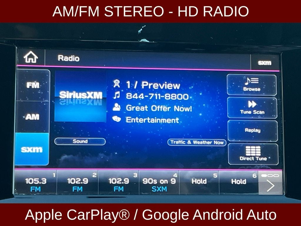 - Radio: Subaru STARLINK 6.5" Multimedia Plus System -inc: AM/FM stereo, HD radio, single disc CD player, MP3/WMA/CRR/RW file capability, multi-touch gesture high resolution 6.5 LCD display screen, Bluetooth audio streaming connectivity, Bluetooth hands-free phone connectivity, Bluetooth hands-free SMS text messaging connectivity (applicable w/compatible cell phone), iPod control capability, rear-vision camera display, SiriusXM All Access radio (subscription required), SiriusXM Travel Link (subscription required), smartphone integration, AHA, Android Auto, CarPlay, Pandora, 6 speakers, 3.5mm auxiliary input jack, dual input USB ports, roof mounted antenna and audio/satellite connected services