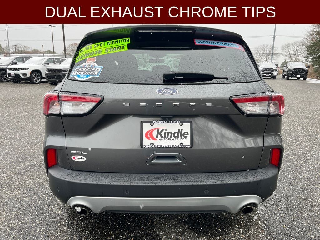 2022 Ford Escape SEL in Carbonized Gray Metallic vehicle highlights include.., CERTIFIED READY, 1 OWNER, ACCIDENT FREE, FWD, VOICE ACTIVATED NAVIGATION w/TOUCH SCREEN, BLIS W/CROSS-PATH PROTECTION, FORD CO-PILOT 360* ASSIST+, REAR VIEW CAMERA w /REVERSE SENSING, DUAL AC, REMOTE START, INTELLIGENT ACCESS W/PUSH BUTTON START, REMOTE KEYLESS ENTRY, ILLUMINATED ENTRY, AUTOMATIC, HEATED STEERING WHEEL, LED SIGNATURE LIGHTING, REAR SPOILER, USB(A) & USB(C), POWER POINTS, SIRIUS XM*, 8. PREMIUM TOUCH SCREEN, FORDPASS CONNECT, SYNC®3 W/APPLINK, PTC HEATER, PREMIUM FOG LIGHTS, POWERED & HEATED MANUAL FOLD MIRRORS, QUALITY, SPORT SEATS, HEATED SEATS, LATCH* CHILD SAFETY SYSTEM, ADVANCETRAC* W/RSC, LED TAIL LIGHTS, CAPLESS FUEL EZ FILL, DUAL EXHAUST w/CHROME TIPS, ACTIVE GRILLE SHUTTERS, TIRE INFLATOR w/SEALANT KIT, T.P.M.S., SECURILOCK*, SECURICODE*, REFRESH 95, ROOF RACKS, SOS POST CRASH ALERT, REAR PRIVACY GLASS, 1.5L EcoBoost, 8-Speed Automatic, 18 Machined-Face Aluminum Wheels, 3.81 Axle Ratio, ABS brakes, Alloy wheels, AM/FM radio: SiriusXM, AM/FM Stereo, Auto High-beam Headlights, Automatic temperature control, Black Roof Rack Rails, Brake assist, Compass, Delay-off headlights, Driver vanity mirror, Electronic Stability Control, Emergency communication system: SYNC 3 911 Assist, Exterior Parking Camera Rear, Ford Co-Pilot360 Assist+, FordPass Connect, Four wheel independent suspension, Front anti-roll bar, Front Bucket Seats, Front Center Armrest, Front dual zone A/C, Front fog lights, Front reading lights, Fully automatic headlights, Heated ActiveX Trimmed Front Sport Contour Bucket Seats, Heated door mirrors, Heated front seats, Heated steering wheel, Illuminated entry, Intelligent Adaptive Cruise Control w/Stop-and-Go, Low tire pressure warning, Outside temperature display, Overhead airbag, Overhead console, Passenger vanity mirror, Power door mirrors, Power Liftgate, Radio data system, Rear anti-roll bar, Rear reading lights, Rear seat center armrest, Rear window defroster, Rear window wiper, Remote keyless entry, Speed Sign Recognition, Speed-sensing steering, Speed-Sensitive Wipers, Split folding rear seat, Spoiler, Steering wheel mounted audio controls, SYNC 3 Communications & Entertainment System, Tachometer, Traction control, Trip computer, Variably intermittent wipers, Voice-Activated Touchscreen Navigation System.