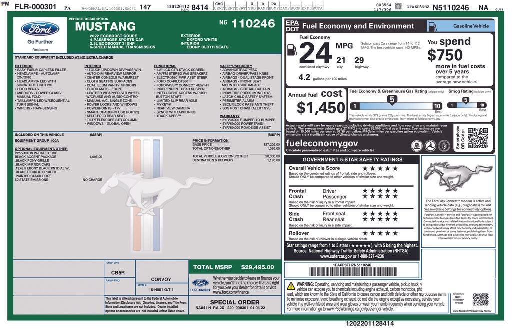 - Vehicle Name: Ford Mustang