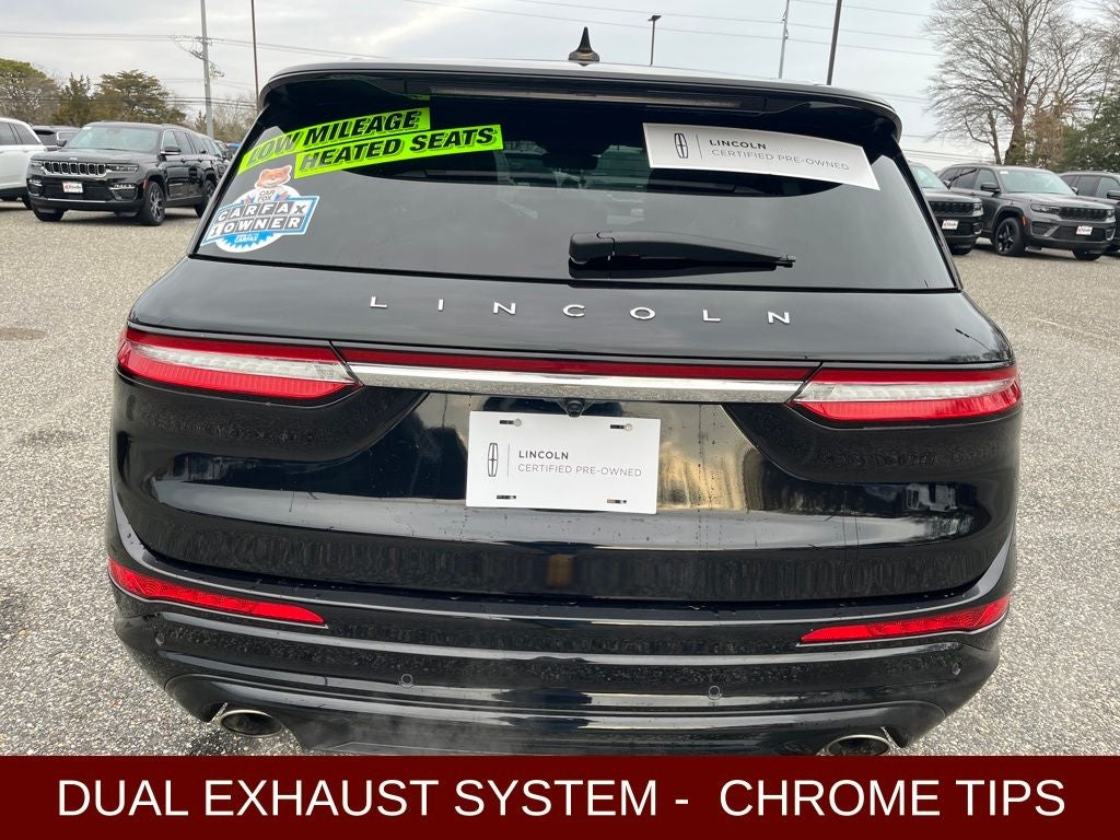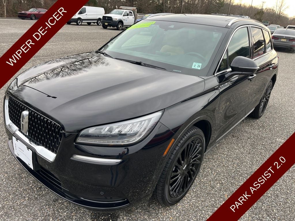 2022 Lincoln Corsair Reserve in Infinite Black Metallic Clearcoat vehicle highlights include.., LINCOLN CERTIFIED, 1 OWNER, CLEAN CAR FAX, LOW MILES, FWD, VOICE ACTIVATED NAVIGATION w/TOUCH SCREEN, BLIS W/CROSS-PATH PROTECTION, 360* CAMERA, LINCOLN CO-PILOT 360 1.5 PLUS, ACTIVE PARK ASSIST 2.0, REAR VIEW CAMERA w /REVERSE SENSING, ADAPTIVE CRUISE CONTROL, PRE COLLISION ASSIST W/AEB, ACTIVE LANE MANAGEMENT, DUAL AC, REMOTE START, INTELLIGENT ACCESS W/PUSH BUTTON START, REMOTE KEYLESS ENTRY, ILLUMINATED ENTRY, AUTOMATIC, PREMIUM LEATHER HEATED STEERING WHEEL, POWERED TELESCOPING STEERING WHEEL, AMBIENT LIGHTING, CONFIGURABLE DAY TIME RUNNING LAMPS, RAIN SENSING WIPERS, WINDSHIELD WIPER DE-ICER, LINCOLN DRIVE MODES, 8. PREMIUM TOUCH SCREEN, LINCOLN CONNECT, FRAMELESS AUTOMATIC REAR VIEW, MIRRORS/HEATED/AUTOFOLD/SIGNAL/DRIVER MEMORY/AUTO DIMMING/APPROACH LIGHTS, QUALITY, SPORT SEATS, HEATED & COOLED FRONT SEATS, VENTILATED SEATS, HEATED 2ND ROW, SLIDING 2ND ROW, ADVANCETRAC* W/RSC, CAPLESS FUEL EZ FILL, DUAL EXHAUST w/CHROME TIPS, SECURILOCK*, CARGO MANAGEMENT SYSTEM, CABIN AIR FILTER, ROOF RACKS, SOS POST CRASH ALERT, UNIVERSAL GARAGE REMOTE, REAR PRIVACY GLASS, EASY FOLD 2nd ROW, 2.0L I4, 8-Speed Automatic, 10 Speakers, 19 Bright Machined Aluminum Wheels, 360-Degree Camera w/Front & Rear Camera Washer, ABS brakes, Active Park Assist 2.0, Alloy wheels, AM/FM radio: SiriusXM, Auto High-beam Headlights, Auto tilt-away steering wheel, Auto-dimming door mirrors, Auto-dimming Rear-View mirror, Automatic temperature control, Brake assist, Compass, Delay-off headlights, Driver vanity mirror, Electronic Stability Control, Elements Package, Emergency communication system: 911 Assist, Evasive Steering Assist (ESA), Four wheel independent suspension, Front And Rear Painted Body-Color Bumpers, Front anti-roll bar, Front Center Armrest, Front dual zone A/C, Front reading lights, Front/Side/Rear Parking Sensors, Fully automatic headlights, Garage door transmitter, Heated door mirrors, Heated front seats, Heated Rear Seat, Heated Steering Wheel, Heated/Ventilated Driver & Front Passenger Seats, Illuminated entry, Intelligent Adaptive Cruise Control, Leather steering wheel, Lincoln Co-Pilot360 1.5 Plus, Low tire pressure warning, Memory seat, Monochromatic Package - Infinite Black, Navigation System, Occupant sensing airbag, Outside temperature display, Overhead console, Panic alarm, Panoramic Vista Roof w/Power Sunshade, Passenger vanity mirror, Power door mirrors, Power Liftgate, Power passenger seat, Premium Leather Heated Comfort Seats, Radio data system, Radio: Lincoln Premium Audio System w/MP3, Rain Sensing Wipers, Rear anti-roll bar, Rear Parking Sensors, Rear reading lights, Rear seat center armrest, Rear window defroster, Reverse Brake Assist, Roof rack: rails only, Security system, SiriusXM Radio, Speed control, Speed-sensing steering, Split folding rear seat, Spoiler, Steering wheel memory, Steering wheel mounted A/C controls, Steering wheel mounted audio controls, SYNC 3 Communications & Entertainment System, Tachometer, Traction control, Trip computer, Turn signal indicator mirrors, Unique Lincoln Design Body-Color Mesh Upper Grille, Wheel Lip Molding Painted in Body Color, Wheels: 20 Unique Monochromatic Aluminum, Windshield Wiper De-Icer.