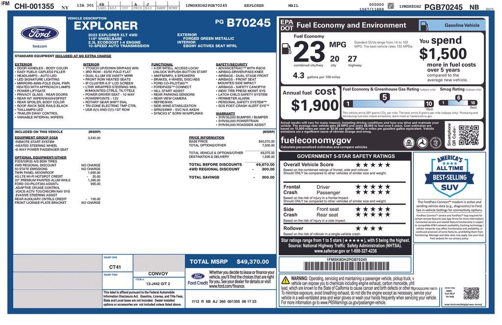 - Fuel Economy Est-Combined (MPG): 23